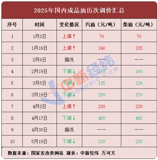 中新经纬注意到,今年以来,国内油价已经历十轮调价窗口,分别为“三涨五跌两搁浅”。涨跌互抵后,国内汽、柴油价格每吨较去年底分别下调655元、630元。若本轮调整落地,2025年调价格局将变为“四涨五跌两搁浅”。